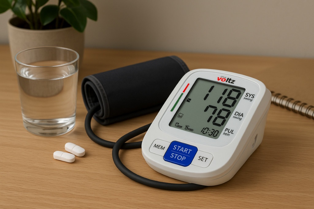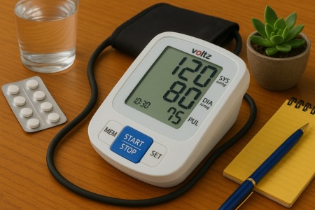 Апарат за кръвно налягане Voltz, Маншет, 2х90 позиции памет, LCD дисплей