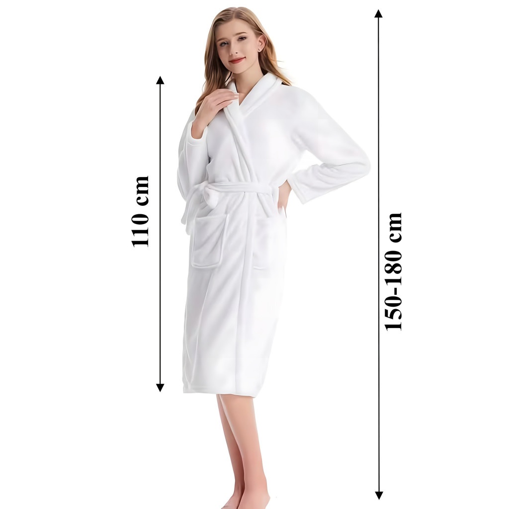 Благодарение на полиестерния материал, халатът е устойчив на износване и може да се пере в пералня на ниски температури, запазвайки формата и цвета си след многократна употреба. Той не се свива или деформира, което го прави надежден избор за ежедневна употреба в дома или в хотелски условия. Дизайнът е хипоалергенен и не дразни кожата, осигурявайки максимален комфорт за чувствителни типове кожа.