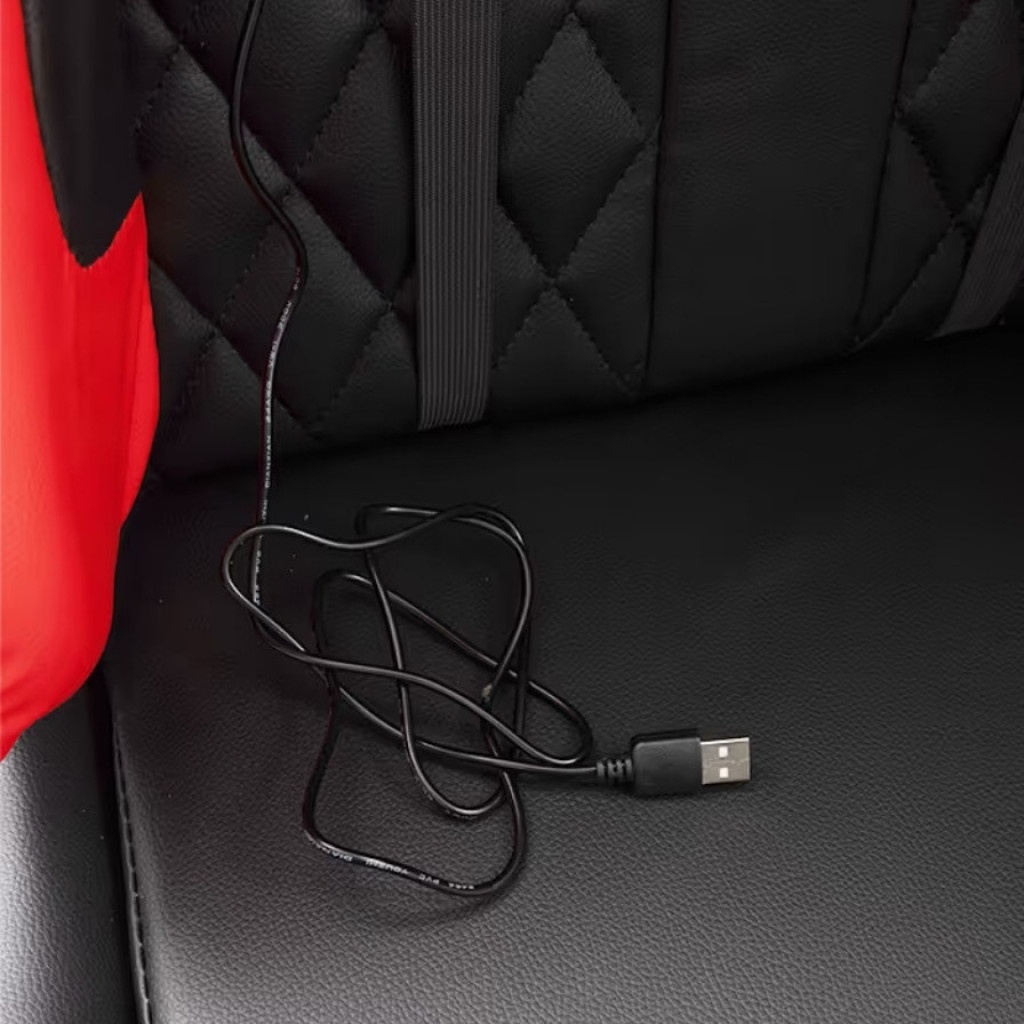 Този ергономичен геймърски стол в ярък червен цвят е проектиран за перфектна поддръжка на тялото. С регулируема облегалка тип „кофа“, 2 възглавници за врат и кръст, вградена масажна функция (захранвана през USB) и прибираща се подложка за крака, той осигурява релаксация и стабилност. 5-лъчевата основа с колелца гарантира мобилност, а регулируемата височина и наклон позволяват персонализация.