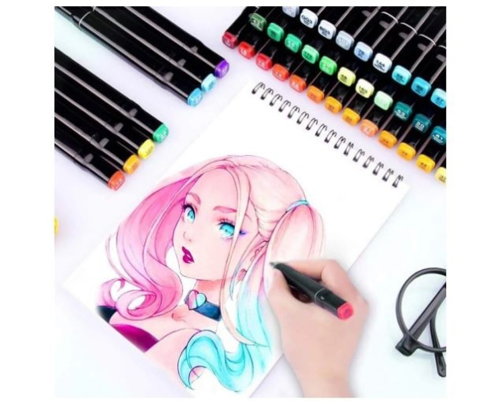 Комплектът маркери с алкохолна основа е създаден за професионални художници, дизайнери и любители, които търсят високо качество, наситени цветове и максимална гъвкавост при рисуване и скициране. Двустранният дизайн и богатата цветова палитра осигуряват свобода при работа върху различни творчески проекти. Включеният калъф гарантира удобство при съхранение и безопасно пренасяне.