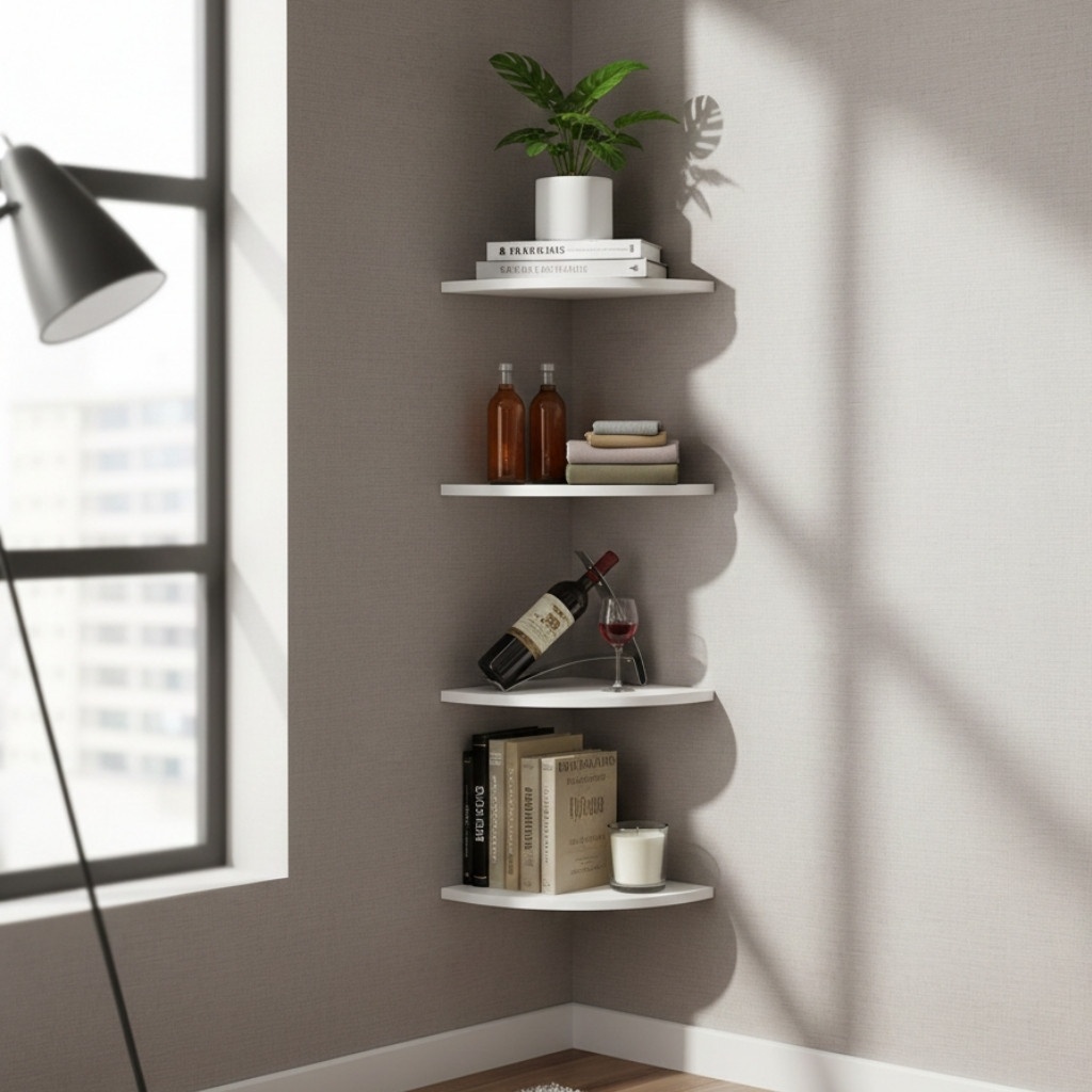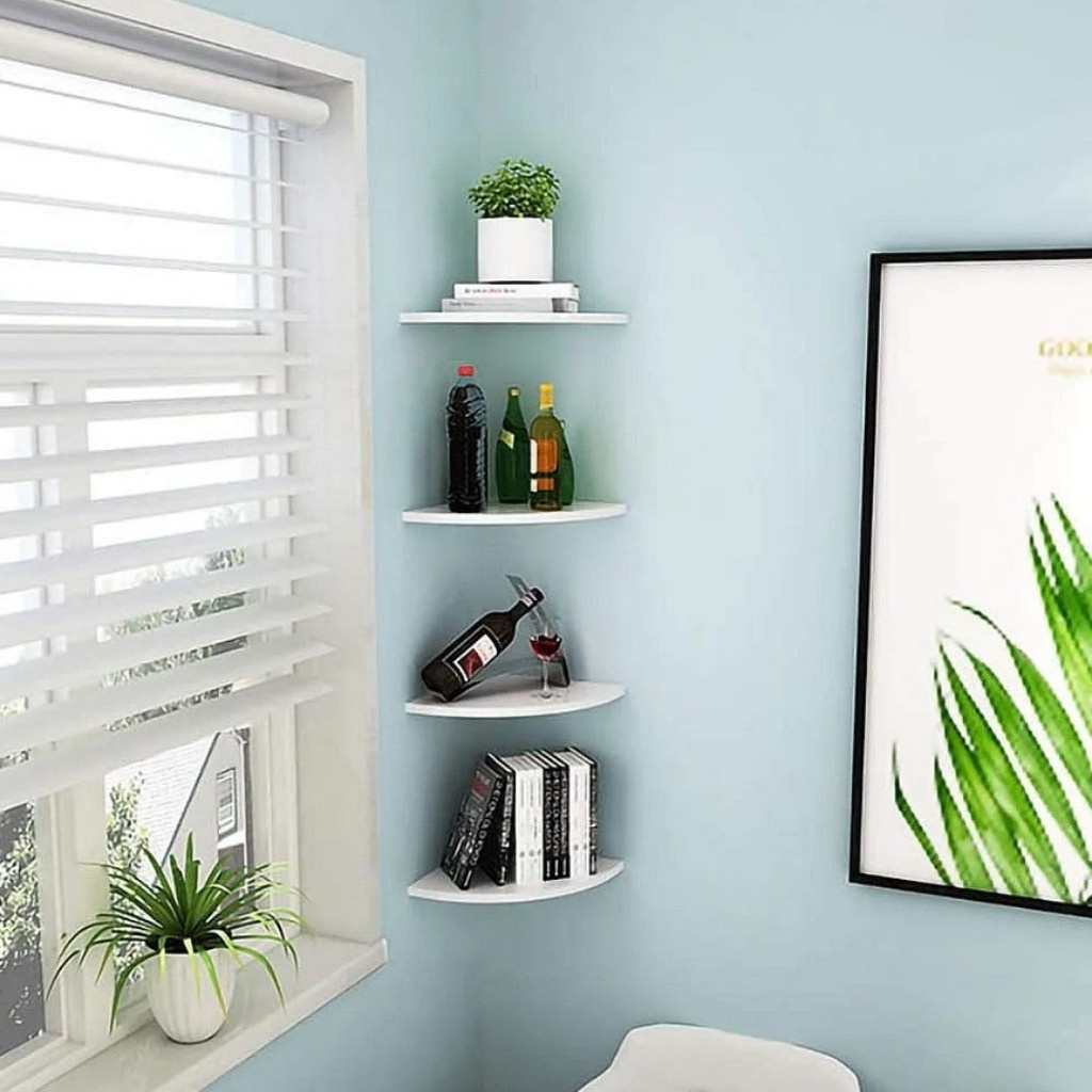 Съдържание на пакета: 4 × Стенни ъглови рафта, предназначени за декорация и съхранение.
