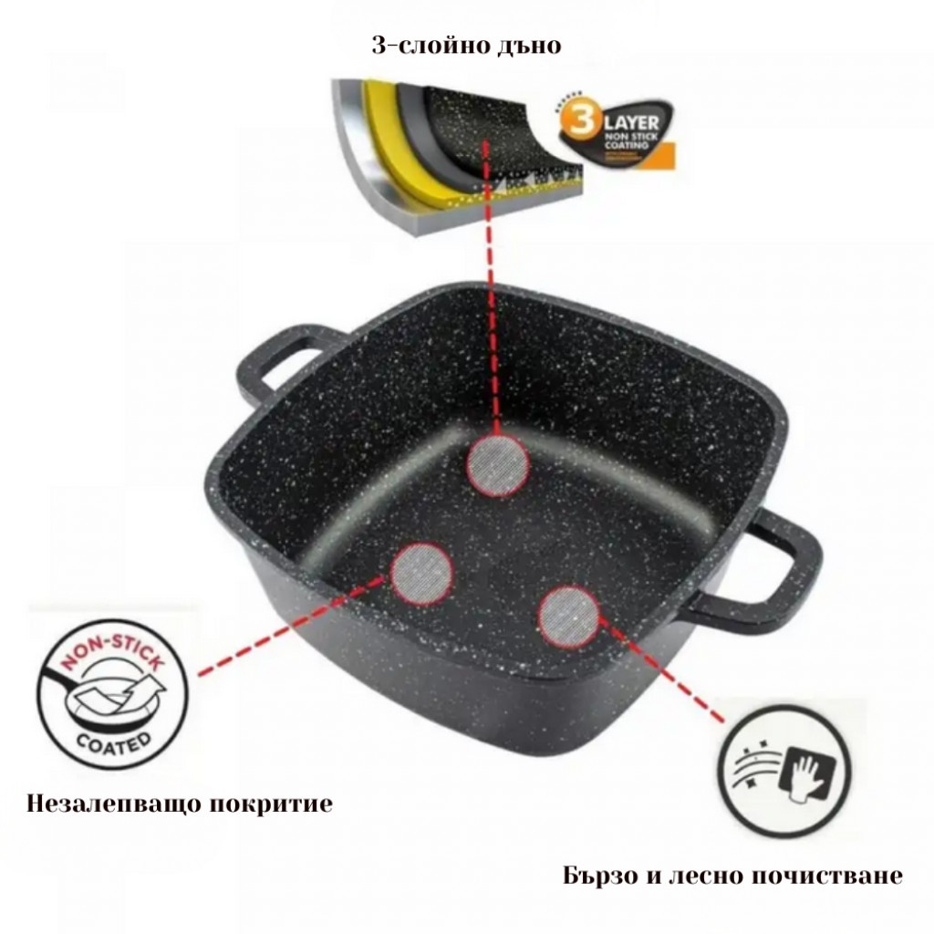 - Трислойно мраморно покритие – незалепващо, устойчиво, антибактериално