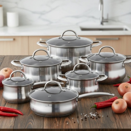 Комплект тенджери EDENBERG EB‑2420M – 12 части от неръждаема стомана с многослойно дъно