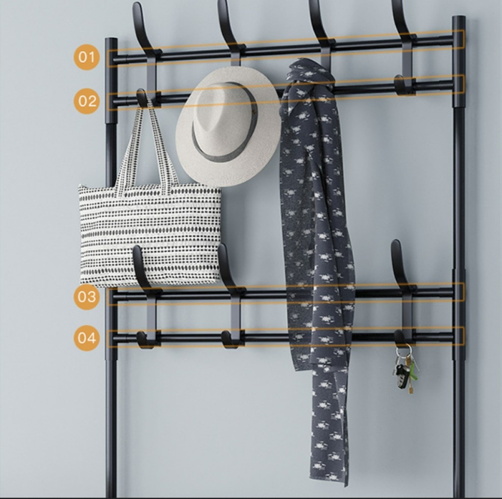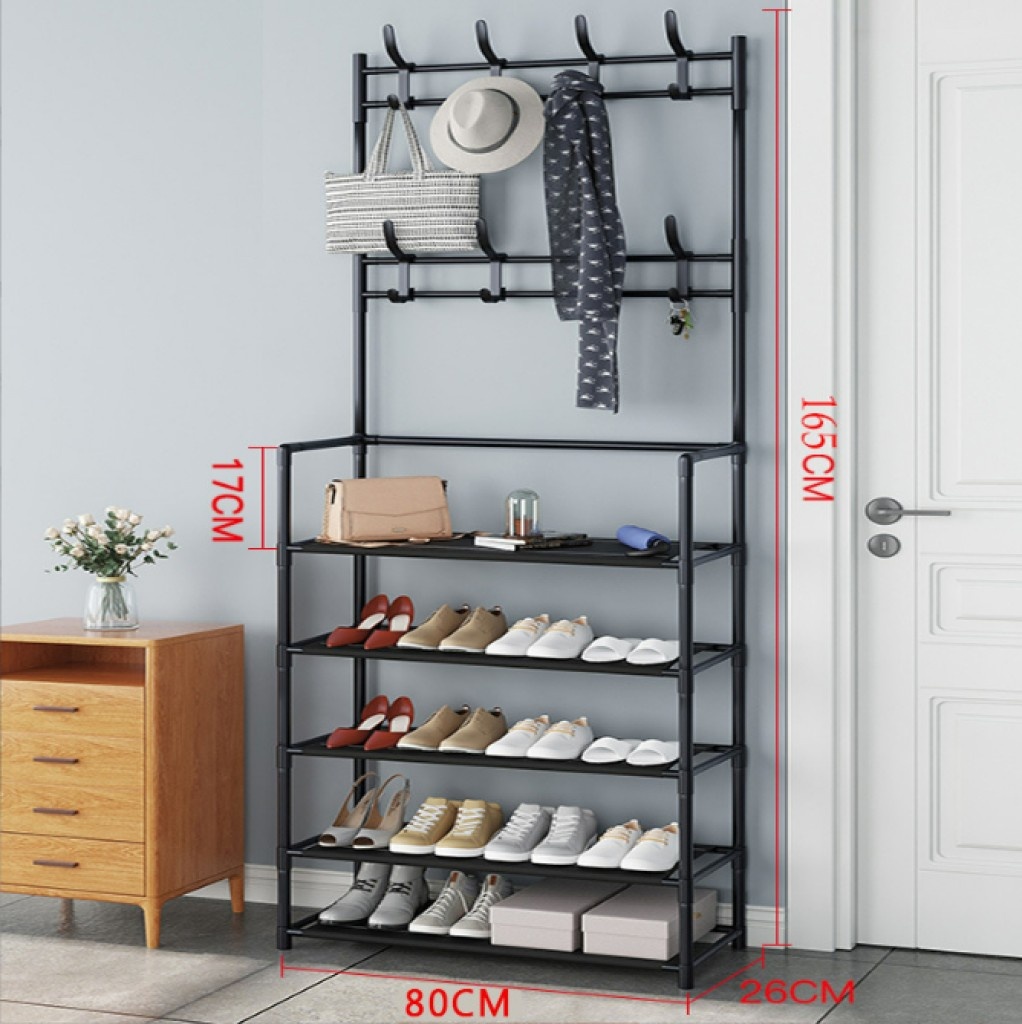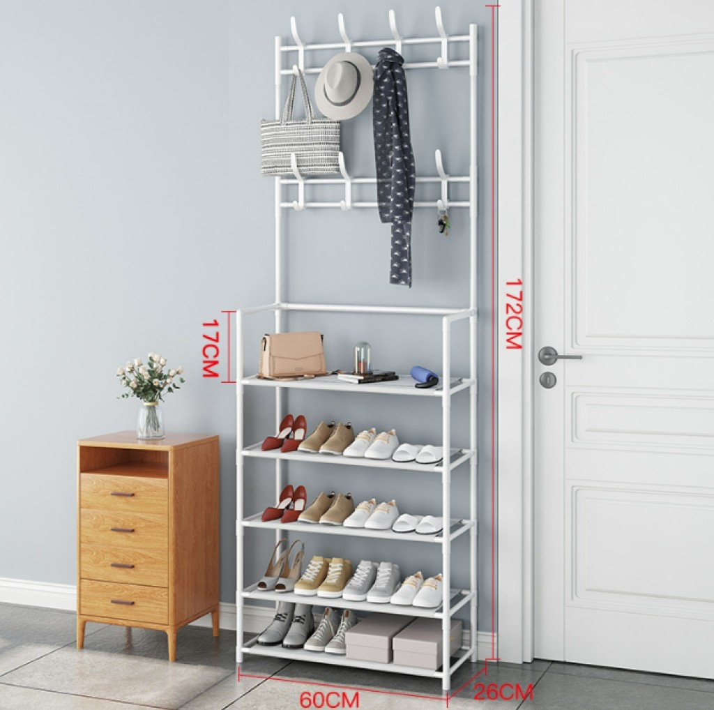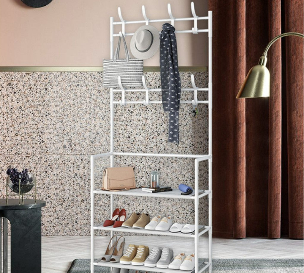 Тази многофункционална стойка за обувки, чанти и закачалка за връхни дрехи е идеалното решение за организиране и съхранение на вашите вещи. С елегантния и стилен дизайн, който се предлага в няколко цвята и дизайна, тя ще се впише перфектно във всяко помещение.