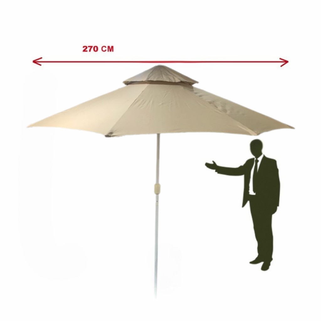 Уредът разполага с регулируема височина и функция наклон, които осигуряват перфектно настройване на сянката според движението на слънцето през деня. Платът е изработен от плътен полиестер с UV и водоотблъскваща обработка, което гарантира не само издръжливост, но също така запазване на цвета и качеството дори при продължително излагане на агресивни атмосферни условия.