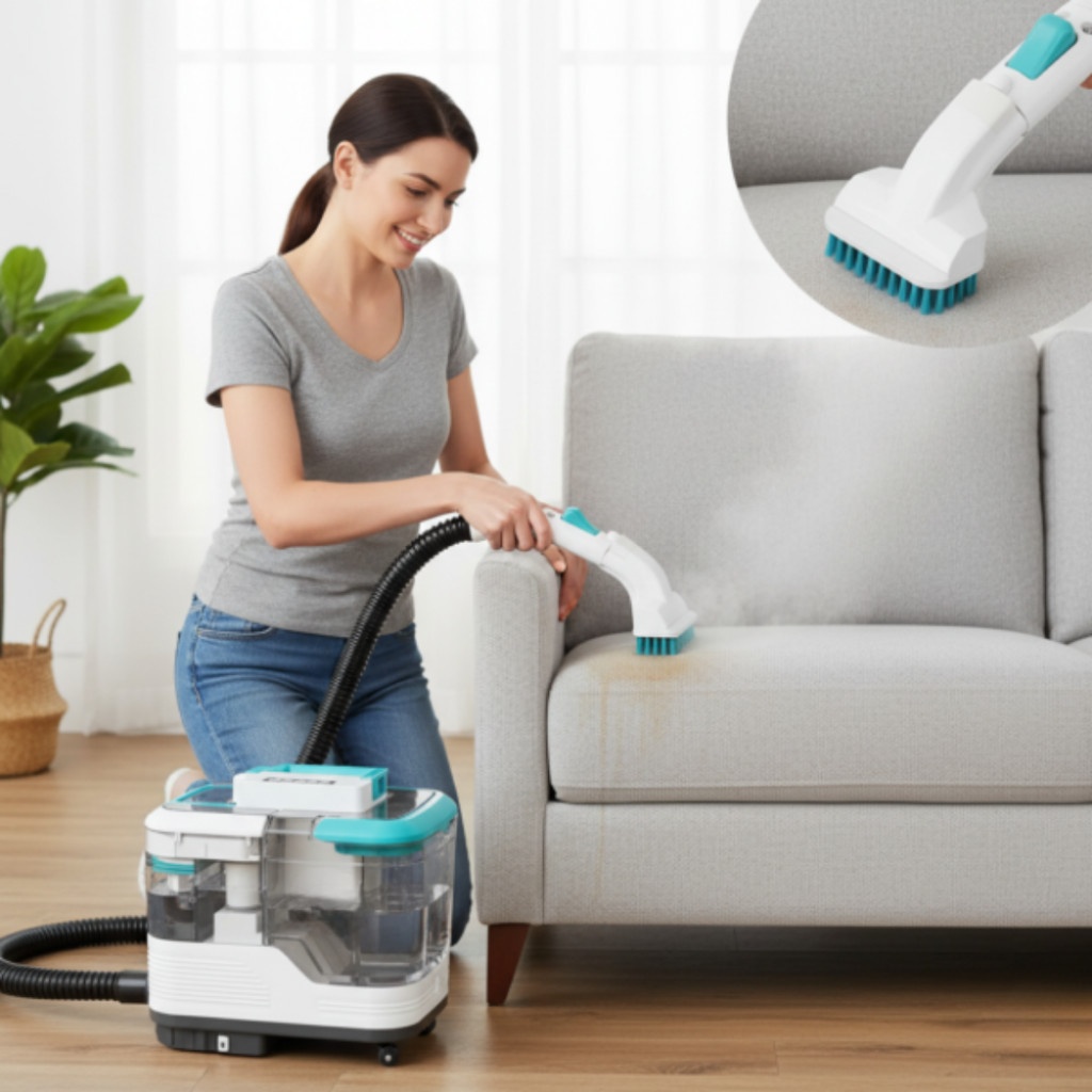 Омръзнало ви е от упорити петна по дивана, мокета или автомобилния интериор? С портативната прахосмукачка с пара W5 ще постигнете професионално качество на почистване у дома – бързо, безопасно и ефективно. Тя комбинира мощно засмукване и силата на парата, за да премахне мръсотия, петна и бактерии без препарати и химикали.