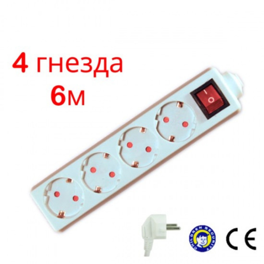 Разклонител с ключ 16А 6 гнезда 1.5М