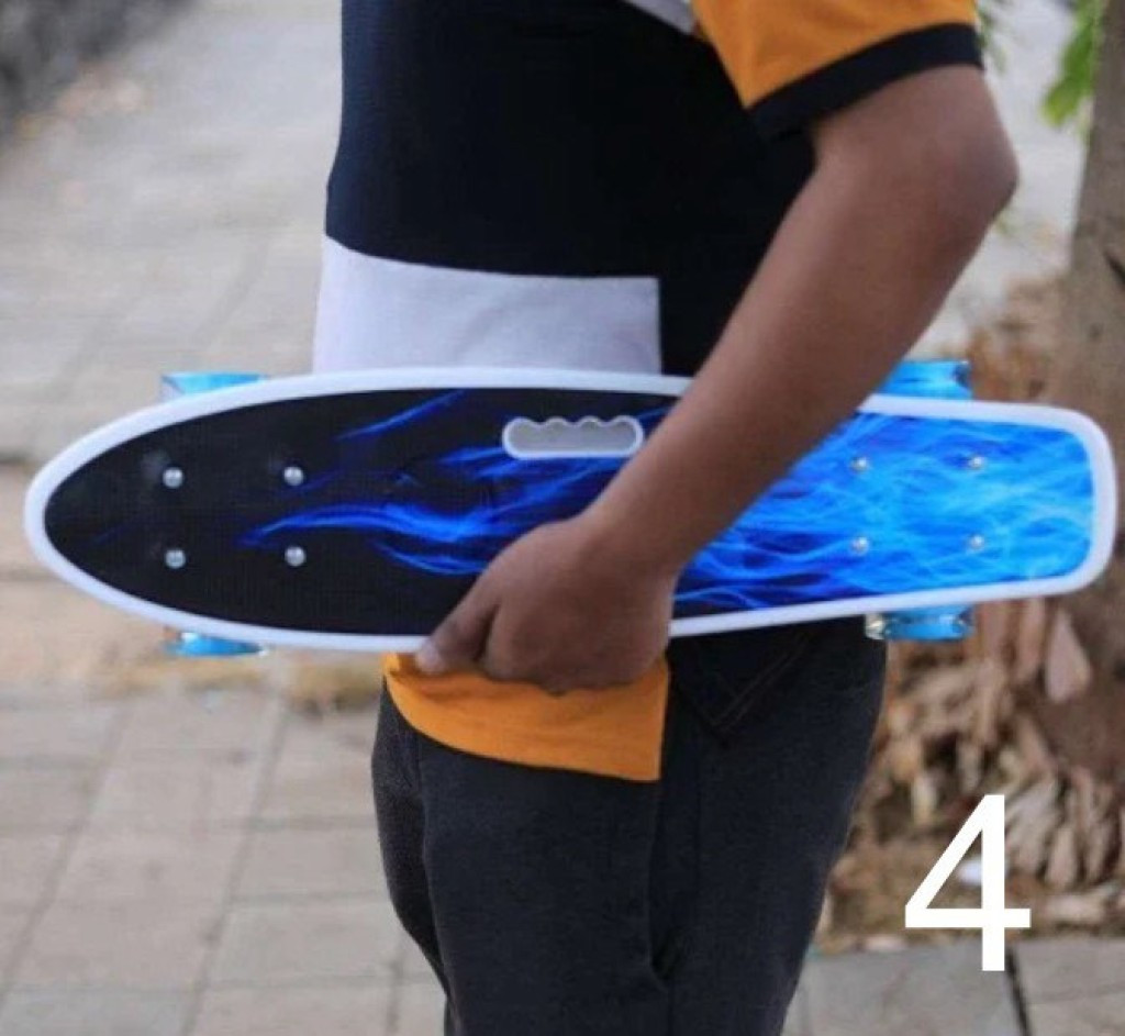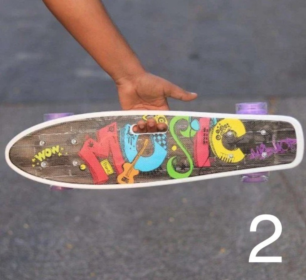 Открийте свободата на движението с нашия Скейтборд пениборд! Със своите компактни размери на дъската от 55,5см х 14,5см и дебелина от 1,5см, този скейтборд е идеален за градските приключенци, които търсят лекота и маневреност. Тежащ само 2кг, той е перфектен за носене и съхранение, когато не се използва.