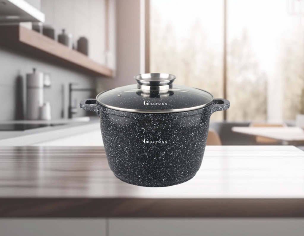Тенджерата Goldmann е перфектният избор за приготвяне на големи количества храна с лекота и ефективност. Със своето висококачествено керамично покритие и издръжлив лят алуминий, тя е създадена да задоволи всички ваши кулинарни нужди.