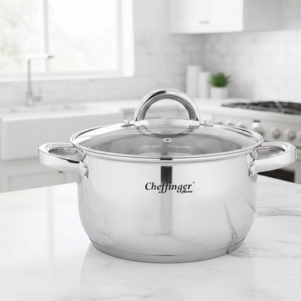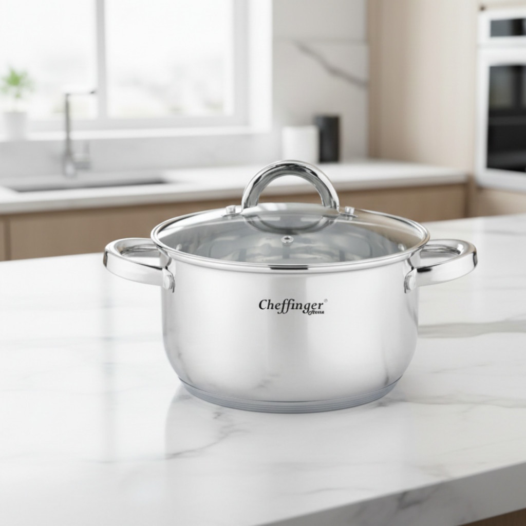 Професионалната серия тенджери на Cheffinger предлага перфектно съчетание между дълготрайност, стил и висока енергийна ефективност. Изработени от първокласна неръждаема стомана (инокс), тези съдове са проектирани да задоволят нуждите както на домашните любители готвачи, так и на професионалистите, търсещи прецизност при всяко ястие.