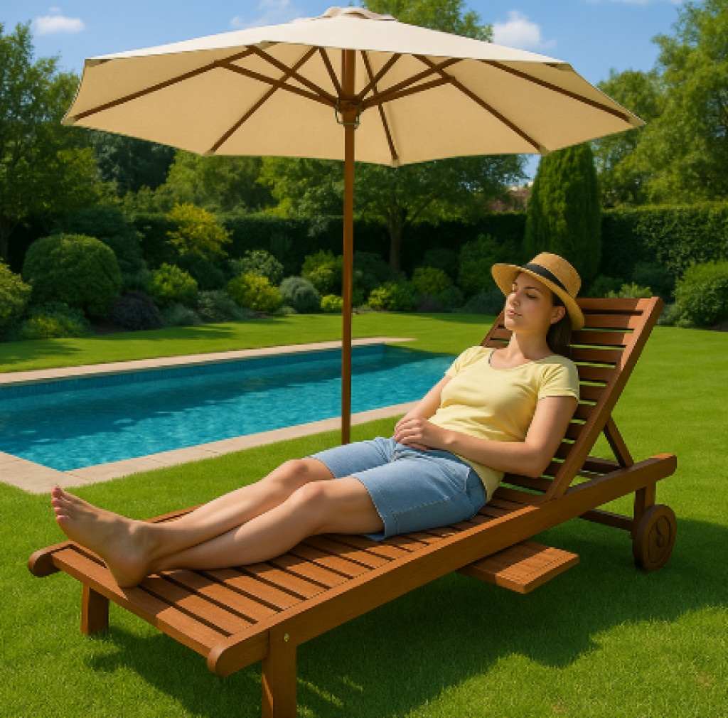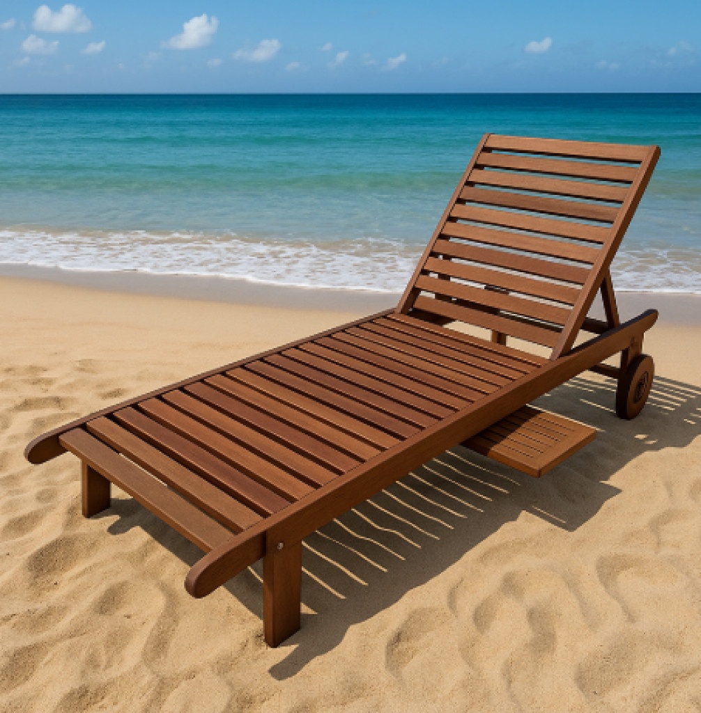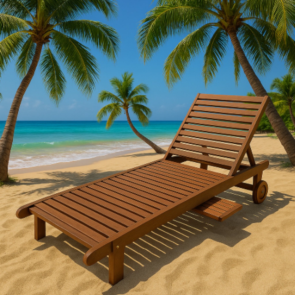 Издръжливост: Обработката с тиково масло гарантира устойчивост на атмосферни влияния, което прави шезлонга подходящ за целогодишна употреба.